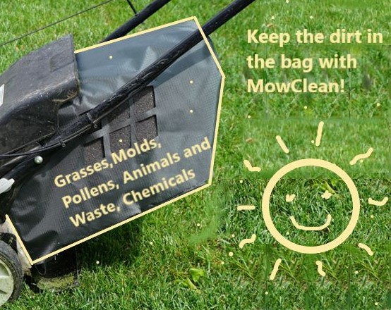 The goal of MowClean is to improve human health. It is an air filtering lawn bag cover made to keep dirt in the bag and out of your lungs. MowClean bags fit electric and gas mowers.